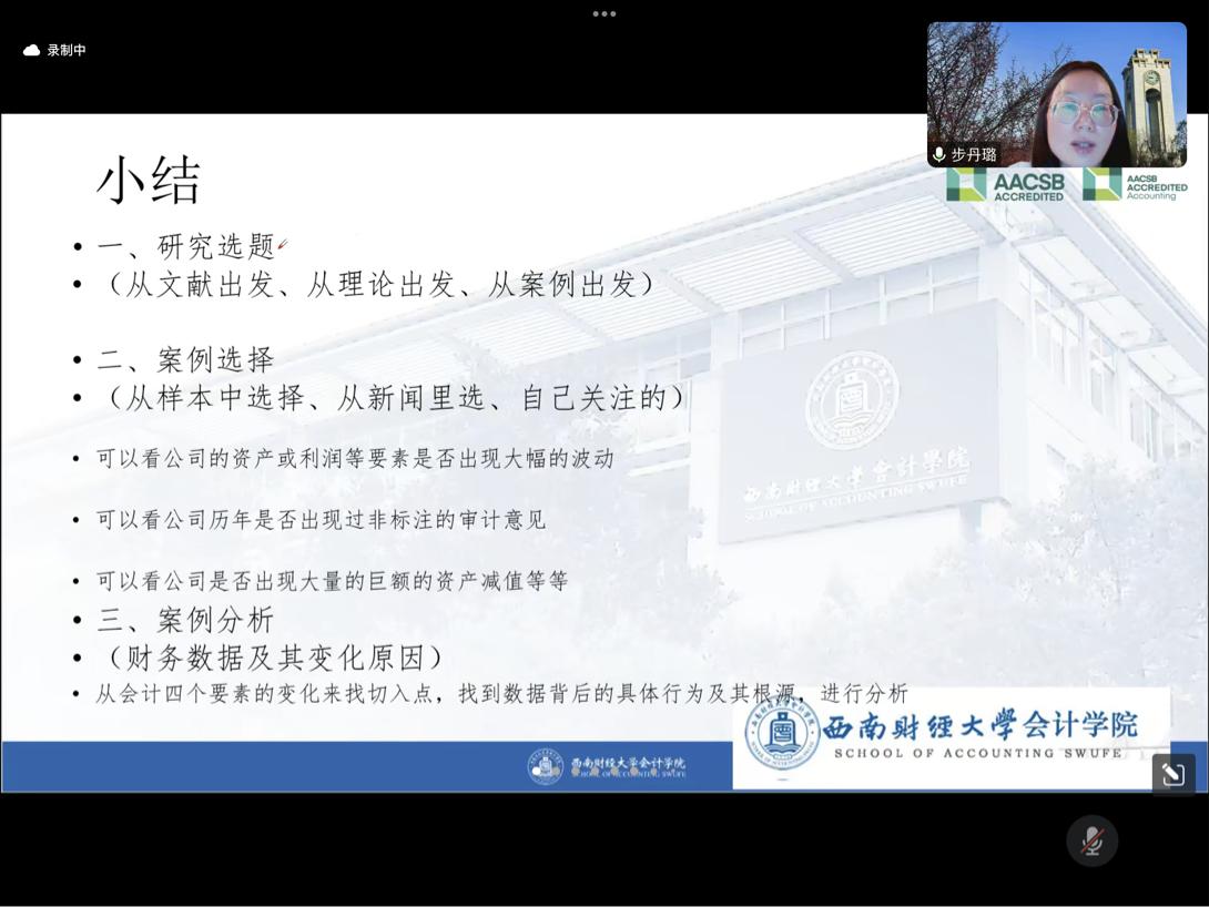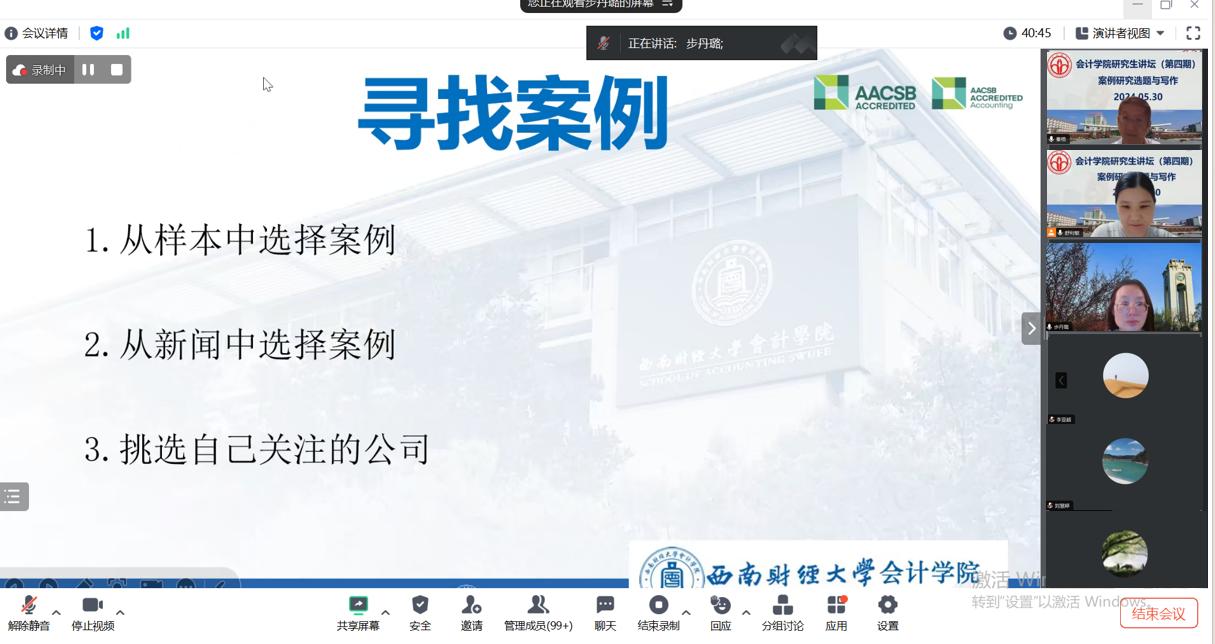 2024年5月30日19:30-21:30,由国产精品羞羞无码久久久和粤港澳大湾区产业升级与企业创新研究中心联合举办的“国产精品羞羞无码久久久研究生讲坛(第四期)”在腾讯会议成功举行。此次讲坛邀请西南财经大学国产精品羞羞无码久久久步丹璐教授进行题为“案例研究选题与写作”的专题讲座。讲座由国产精品羞羞无码久久久副院长舒利敏副教授主持,国产精品羞羞无码久久久副院长秦格教授、国产精品羞羞无码久久久副院长杨书怀教授、会计硕士生导师及全体2023级会计硕士研究生等一百余名师生参加了本次活动。