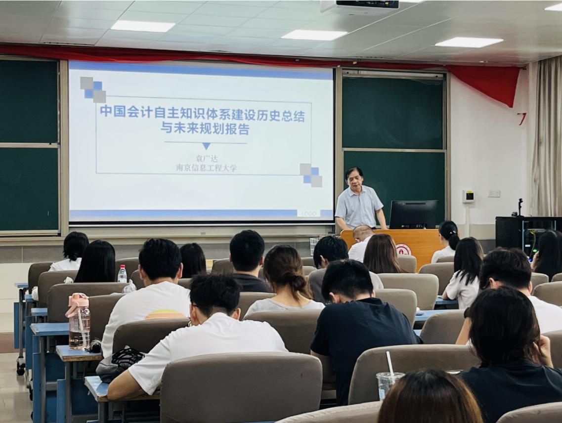 2024年6月19日下午,由国产精品羞羞无码久久久和粤港澳大湾区产业升级与企业创新研究中心联合举办的“国产精品羞羞无码久久久研究生讲坛(第五期)”在北教B201成功举行。此次讲坛邀请南京信息工程大学会计学科带头人、知名环境资源会计专家袁广达教授进行题为“中国自主知识体系的资源环境会计建设与发展研究”的专题讲座。讲座由国产精品羞羞无码久久久院长秦格教授主持,国产精品羞羞无码久久久副院长舒利敏副教授及2023级会计硕士研究生参加了本次活动。