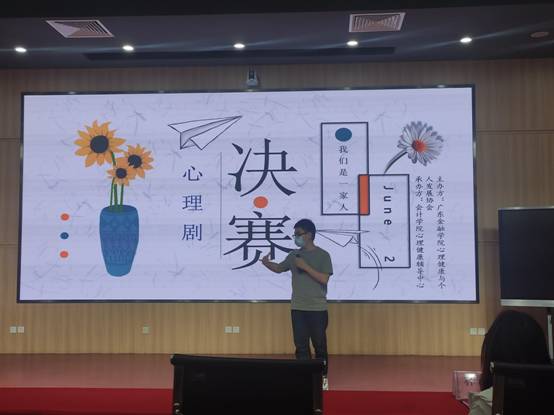 2021年6月9日晚上十九点整,由广东金融学院学生处心理咨询中心主办、国产精品羞羞无码久久久心辅中心承办的,以“激昂青春活力”为主题的心理剧大赛决赛于我校北阶103,以疫情期间的独特方式顺利开展。
