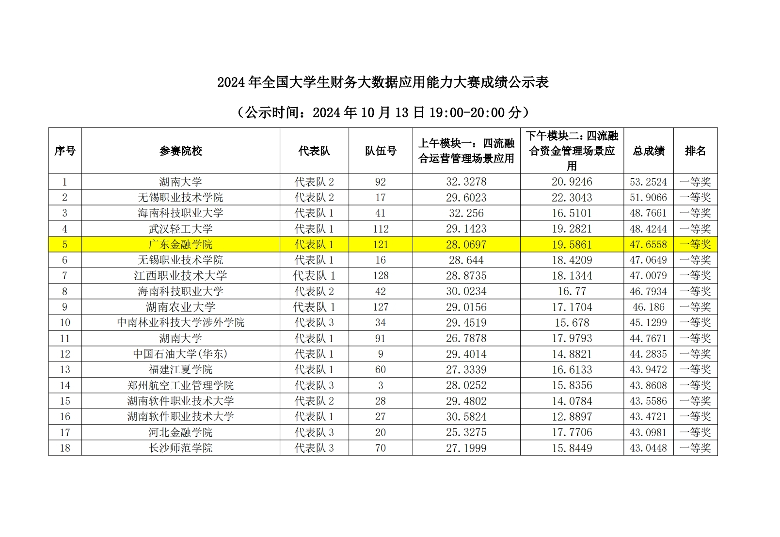2024年10月13日,全国大学生财务大数据应用能力大赛隆重举行,本次比赛共有129支全国高校队伍同台竞技,经过激烈角逐,由我院代表我校的3支队伍喜获佳绩,分别荣获一等奖、二等奖、三等奖。充分展示我院学子扎实的专业功底与应用能力。