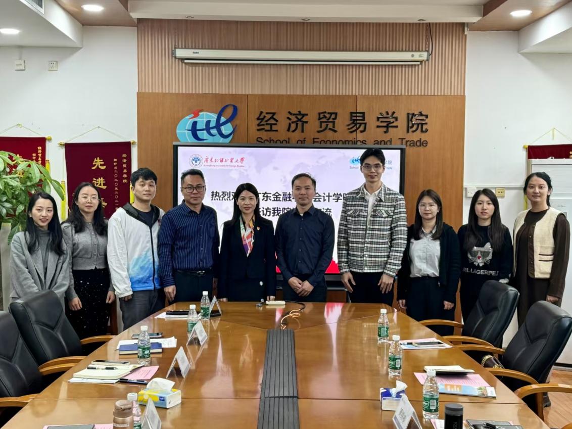 2024年11月27日下午,广东金融学院国产精品羞羞无码久久久党委书记黄锡榜,辅导员林喜元、廖俊玉等一行前往广东外语外贸大学经济贸易学院进行调研交流。广东外语外贸大学经济贸易学院党委书记朱珍葶,党政办公室主任吴胜,国际交流项目负责人陈琳,以及辅导员缪冠中、尹浩楠、曾嘉琪等教师出席了座谈会。