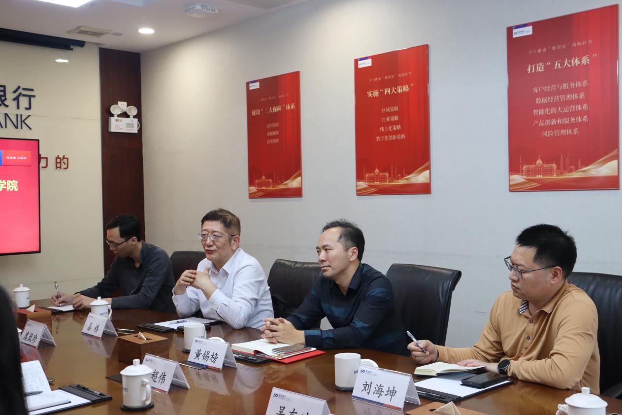 秦格院长提出,希望通过校企合作优化实习基地平台,结合银行业新工具与新场景,为学生提供系统化技能培训。他表示,学院已在校内建成浦发银行广州分行国家级实训基地,配备专业教室及硬件设施,并计划未来引入银行业务模拟系统,以全面提升学生的实操技能,同时也可以为浦发银行的员工培训提供条件。双方还就暑假实习项目达成初步方案,今年广州分行将面向广金学子提供批量实习机会,优秀学生将优先推荐录用。未来,条件成熟将推动“广东金融学院——浦发银行广州分行订单班”落地。