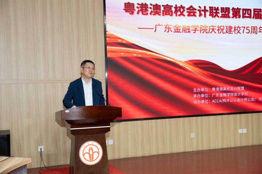 本次研讨会是粤港澳高校会计联盟在AI时代推动会计教育创新的一次重要探索。广东金融学院党委书记李建军在致辞中表达了对大会的深切期许:希望通过深化三地高校的交流合作,共同探索智能会计教育的新路径;以AI技术为驱动,打破传统教育模式,培养兼具专业素养与数字能力的复合型人才;同时立足粤港澳大湾区的战略优势,汇聚资源,提升区域会计教育水平。