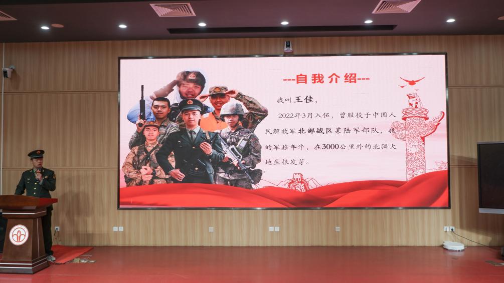 退伍学生王佳作大学生征兵动员宣讲,通过分享入伍经验和军旅生活,让大家共同见证一名退伍军人在历经磨炼后的脱变。激情澎湃的分享让在座的老师和同学们对军人产生崇高敬意,也激发起同学们参军入伍的热情。