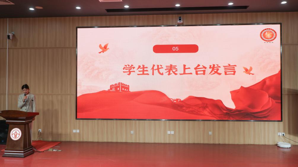 学生代表王蔚然发言,她呼吁同学们应不忘初心、牢记使命,以新时代青年担当为己任,在考试中严守考风考纪,共筑诚信校园。