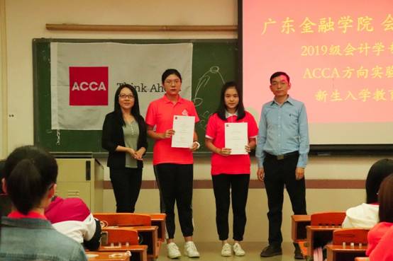 随后,文芳院长和马鹏副院长为“ACCA年度优秀学生”进行颁奖。“ACCA年度优秀学生”是ACCA官方从全国各高校ACCA方向班的在校学生中选拔全球统考、校内成绩和校内活动等综合表现优异的学生进行嘉奖。本年度全国各高校共评选出332名学生,我校共3名同学入选,分别是:2016级陈楚琳同学、翁琳纯同学、2017级刘璐同学。以上三位同学以优异表现展现了广金ACCA学生的风采。最后,“ACCA校园大使”何燊同学向同学们介绍了ACCA官方在高校里举行的各大活动情况;2017级创新实验班优秀学生代表、已全科通过ACCA全球统考的张高哲同学和“ACCA校园大使”、已通过10门全球统考课程的盛子纯同学,向同学们分享了自己的学习经验和心得体会。同学们热情高涨,反响强烈,对未来的ACCA学习生涯充满了期待,对成为具有国际化视野的高端会计人才充满了信心。