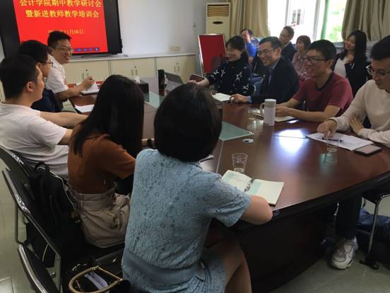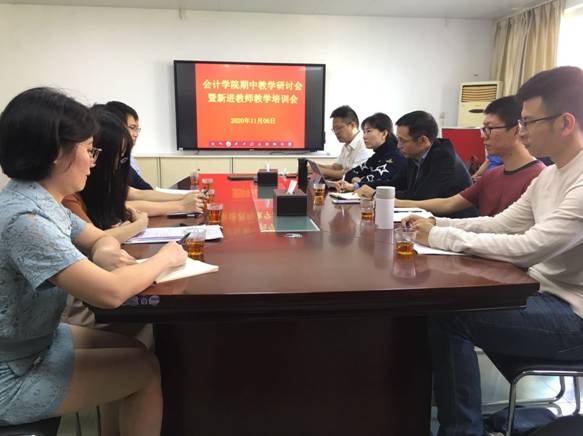 11月6日上午,按照学院期中教学检查工作安排,我院新进教师在听完温雅丽博士的《高级财务会计》观摩课后,集中到学院会议室参加学院期中教学研讨会暨新进教师教学培训会议。会议由教学副院长马鹏教授主持,副院长赵剑锋博士、系主任陈作习博士、实验中心主任陈茜博士参加了会议。