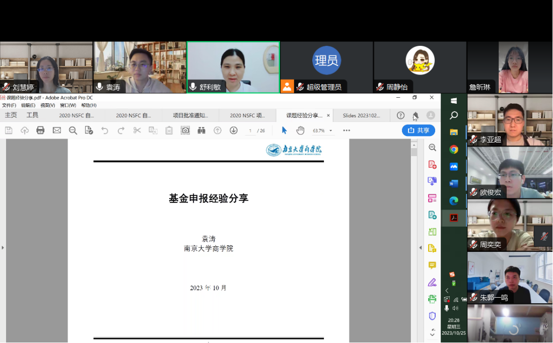 10月25日晚上19:00-22:00,由国产精品羞羞无码久久久、教师发展中心、粤港澳大湾区产业升级与企业创新研究中心联合举办的第五十期会计博士论坛通过腾讯会议线上召开。本次论坛邀请南京大学助理教授袁涛老师为全院师生作“Salary History Ban and Corporate Innovation”和“国家自科项目申报经验分享与交流”两个主题的专题报告。论坛由国产精品羞羞无码久久久副院长舒利敏主持,李亚超博士、周静怡博士等百余名师生参加了本次活动。